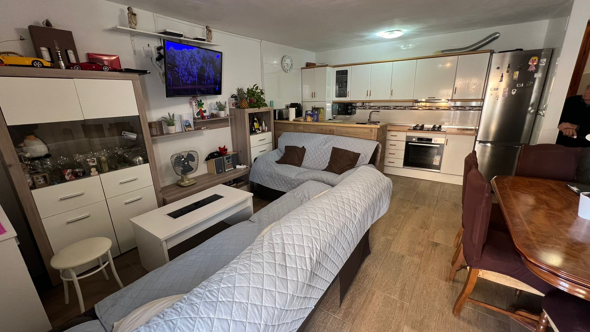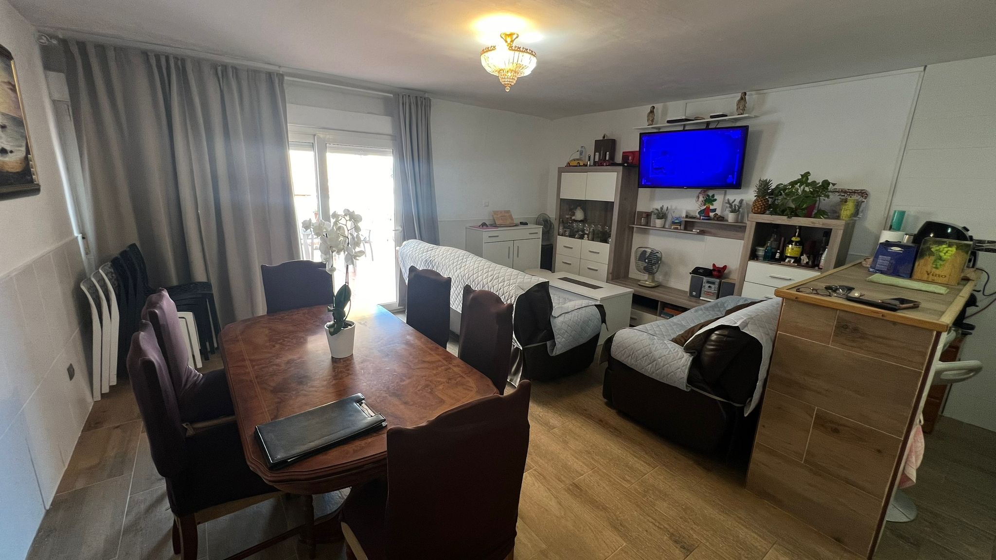 El salón comedor con cocina es amplio, luminoso y funcional, perfecto para
