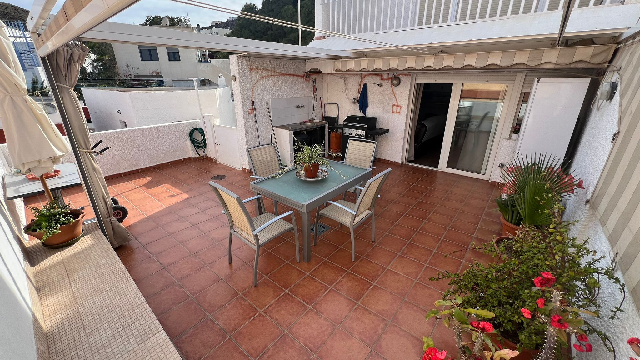 de 40 m2 con toldo plegable, ideal para disfrutar del sol y la brisa del mar.